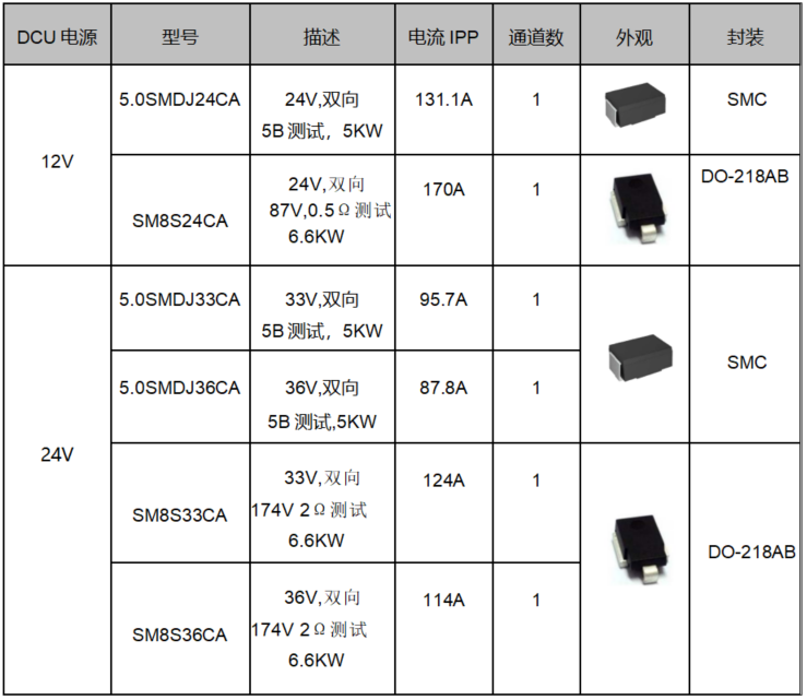 Shanghai leimao lanza un controlador de dominio automotrizDCUEsquema de protección contra sobretensiones en el puerto de alimentación yTVSDiodosLa selección es la siguiente::
