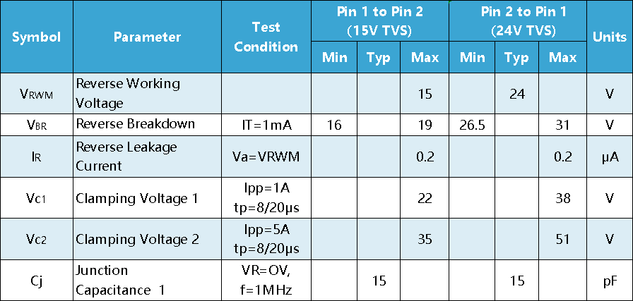 l PESD1LIN La lista de parámetros es la siguiente: