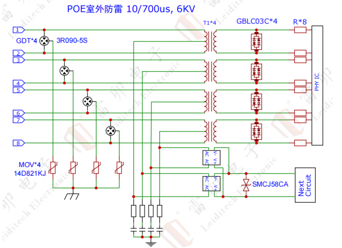 Es muy necesario tomar medidas adecuadas de protección contra sobretensiones para los puertos POE para garantizar el funcionamiento normal del equipo, reducir los costos de reparación y reemplazo y mejorar el rendimiento de la red. La colocación de dispositivos de protección contra sobretensiones en los puertos POE puede reducir efectivamente el impacto de estas interferencias en los equipos. Debido al entorno de uso, los requisitos de protección contra rayos para los puertos POE son a veces tan altos como 4KV, o incluso superiores a 6kV ( 10/700us) .